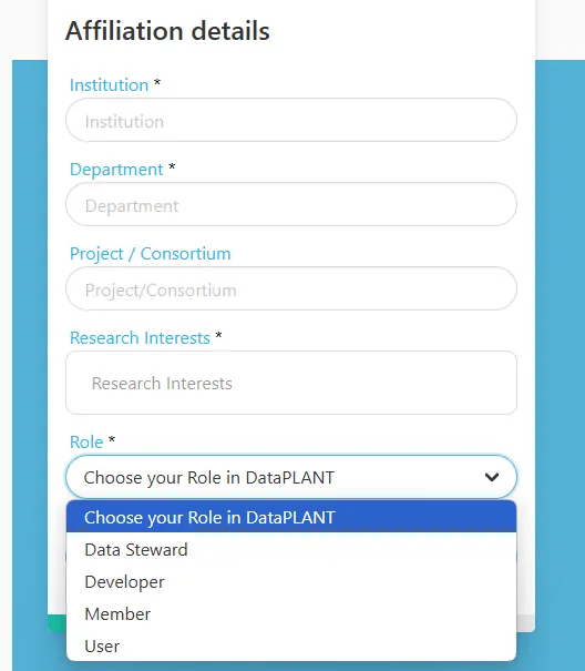 During the registration you can “Choose your role in DataPLANT”: