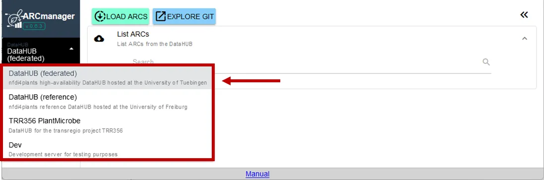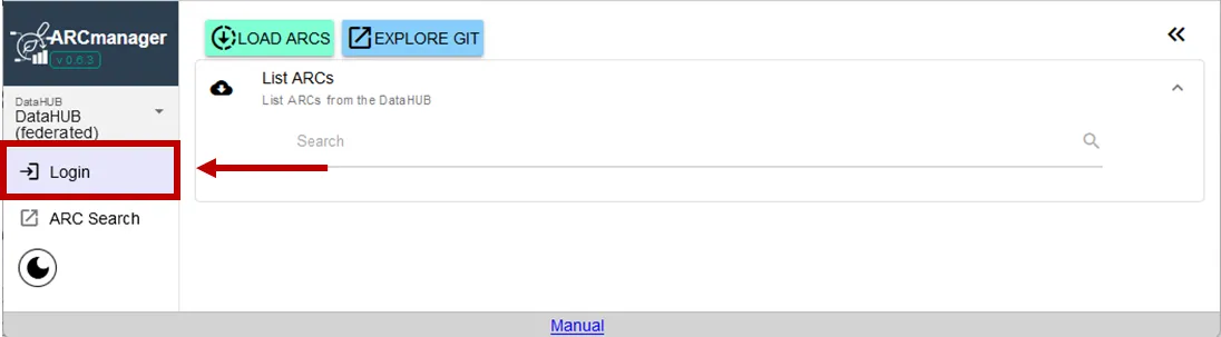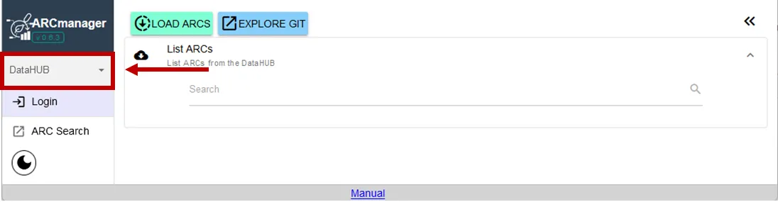To be able to use the ARCmanager, you need to have registered to one of the DataHUBs. Information on the different DataHUBs can be found here.