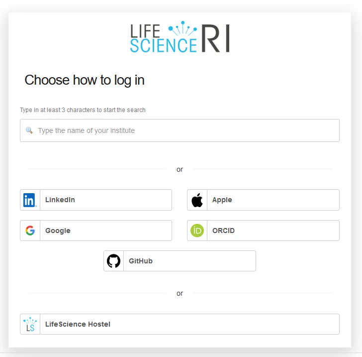 Different authentication options can be used for the same DataHUB user, if the logins of the different providers have been merged. This process is mediated by Life Science RI. If you are not presented with the option to merge your identities during the registration of an additional identity via another provider, you will have to get in touch with support@aai.lifescience-ri.eu for merging the identities. “Unmerged” identities will be treated as two different users in the DataHUB. Having different users complicates working with GitLab projects locally on your computer and is not recommended.