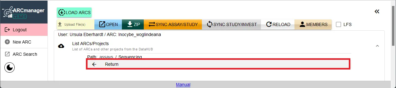 Fig. 6 Use the Return field to go back one step in the directory hierarchy of your ARC.