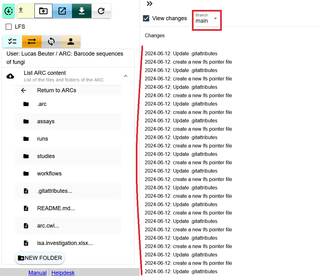 Fig. 10 The right side contains a list of changes by default, as well as the option to switch branches