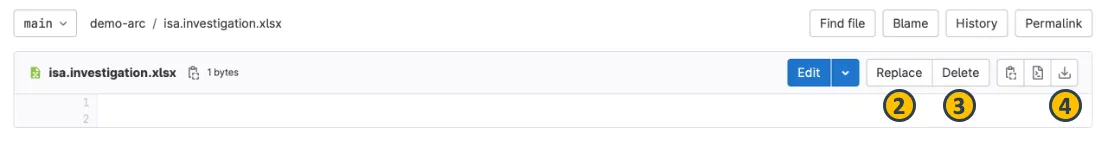 From the next view you can choose to replace (2) a file via upload, delete (3) or download (4) the file.