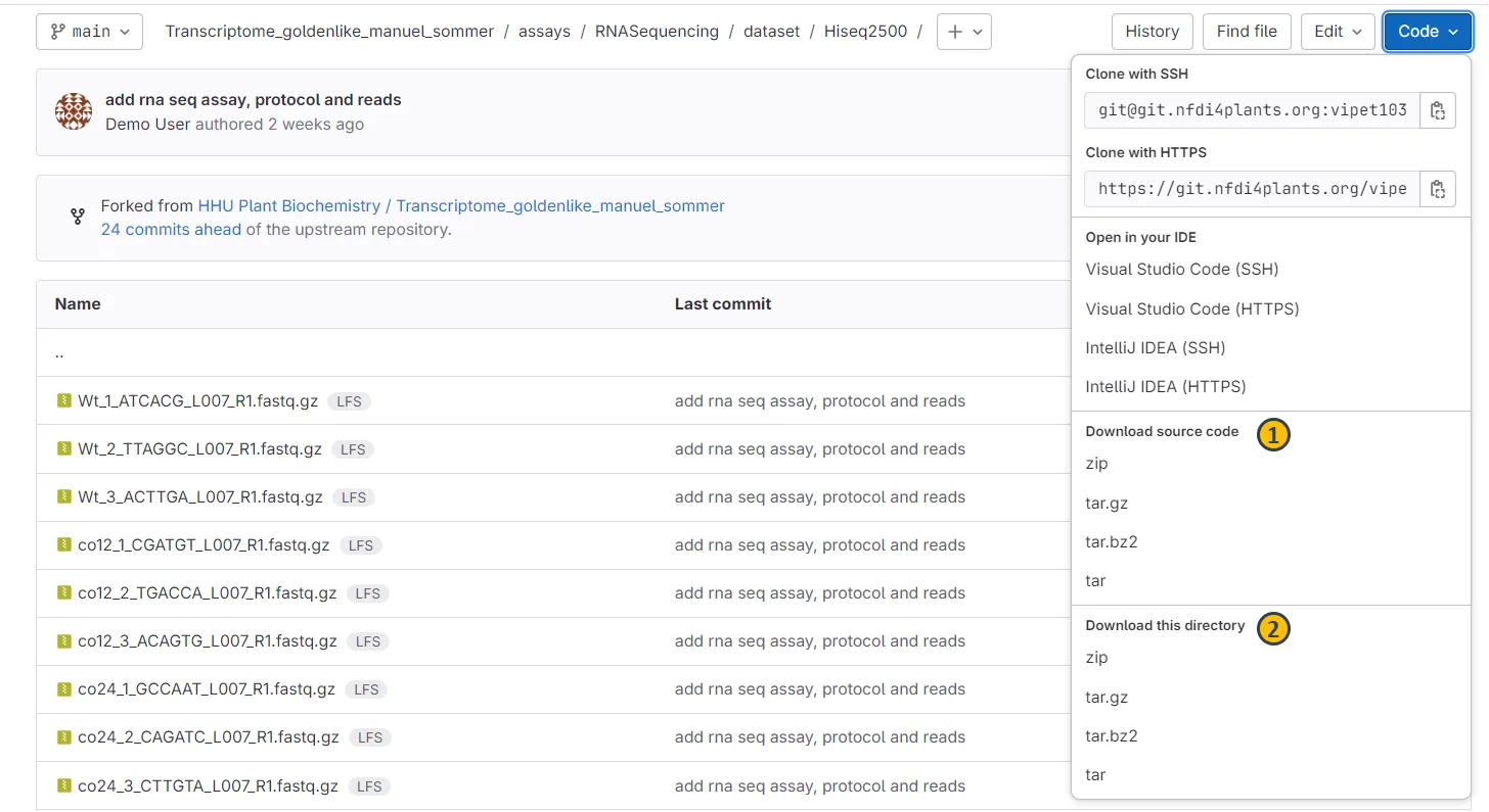 Codedropdown menu, you can… - …download the complete ARC including all data files (1) or