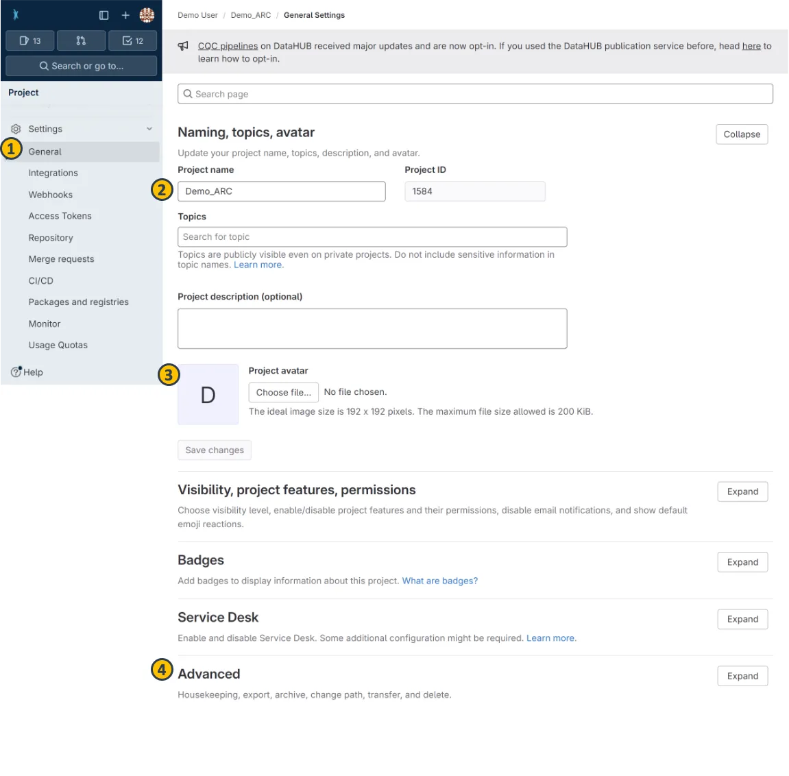 Navigate to the general (1) settings to adapt your ARC’s name (2) or avatar (3) for easier findability.