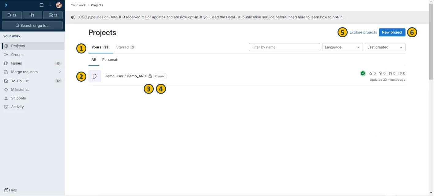 - In the DataHUB, ARCs are called “projects”; they are the same.