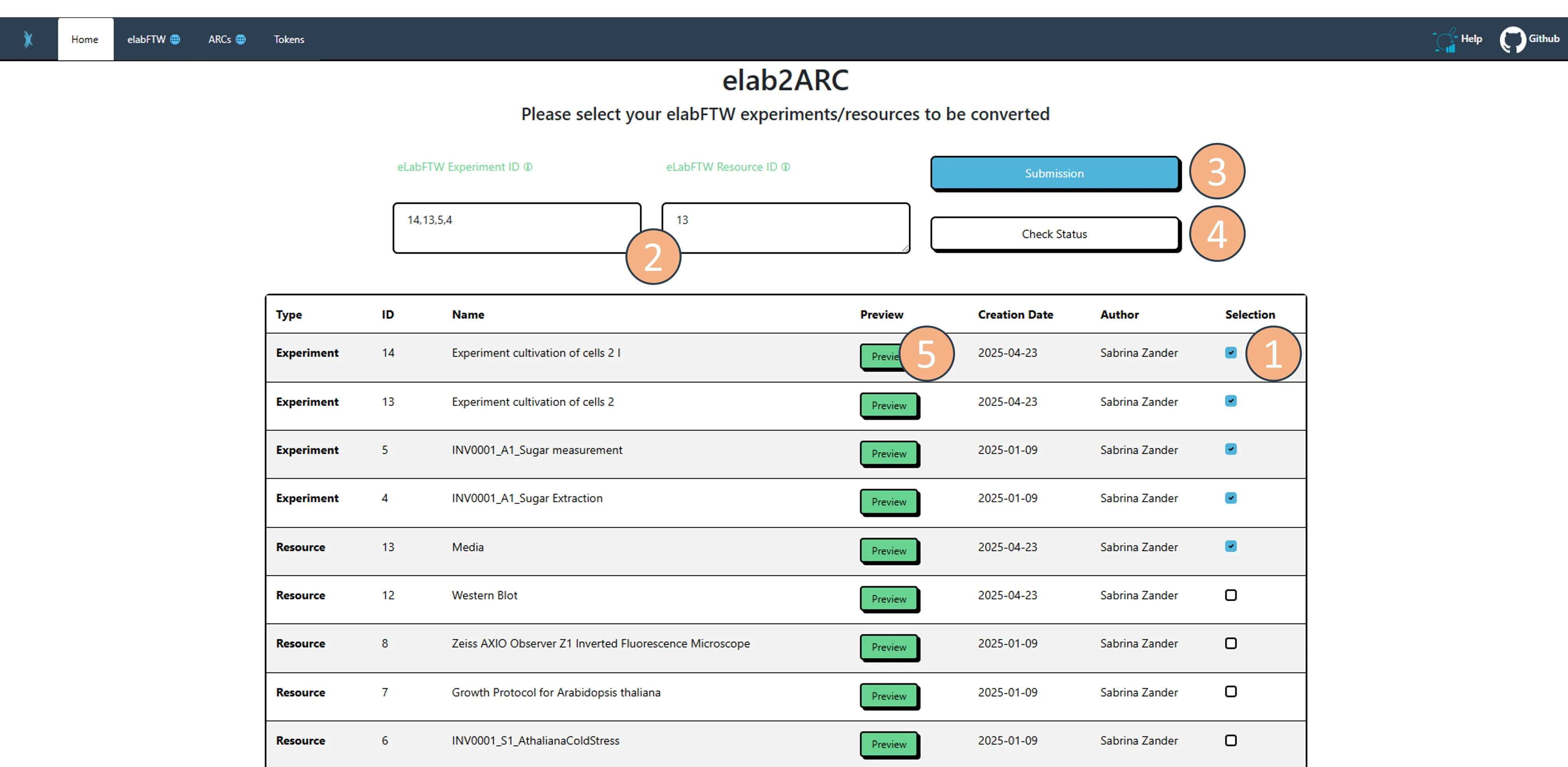 The elab2ARC tool will automatically convert your elabFTW experiments into ARC format